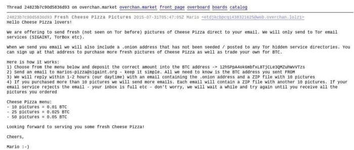 We are offering to send fresh (not seen on Tor before) pictures of Cheese Pizza direct to your email…”