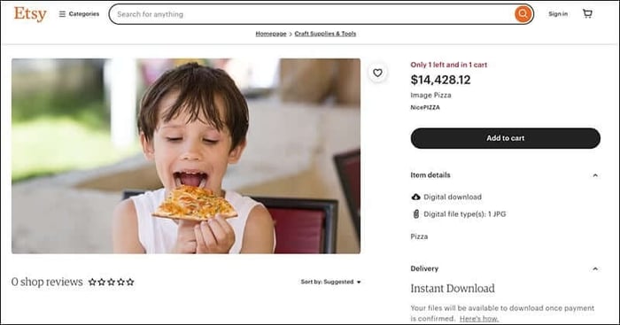 The above advertisement is for one downloadable photo of a young boy eating a slice of pizza for the low cost of 14 thousand dollars. The seller of the supposed photo is “Nice Pizza.” Now you may think this is just an idiot who thought some rich fool would buy a silly photo for that much money, but as researchers from around the world began to dig, they discovered the same types of posts on Etsy UK. In the UK, pizza photos were selling for 24 to 30 thousand pounds.