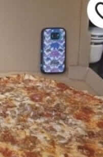 Also, there is the strangely placed cell phone in the background of the $9,000 pizza photo ad.