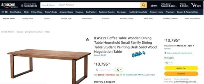 When people began exposing this stuff on Twitter, just like with Etsy, listings were quickly scrubbed. Those that remained on Wayfair and Amazon had prices adjusted to be normal, competitive prices. Researchers were watching the listings change in real time. Here’s an example: