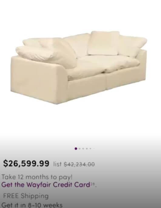 On Wayfair, people discovered white couches for over 26 thousand dollars.