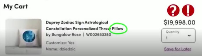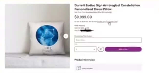 And there was a throw pillow called the Durrett on Wayfair, yours for the low price of $9,999.