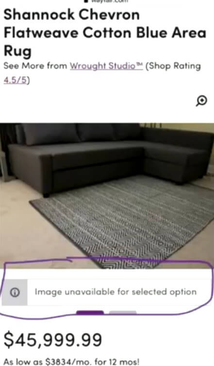 A rug for almost 46 thousand dollars with no image available.