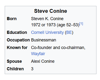 Shah’s father worked for the CIA affiliate, General Electric, exactly like Erika Kirk’s mom. The story is Shah co-founded Wayfair in 2002 with his Cornell classmate, Steve Conine. Within 11 years, he was on the Fortune list of "40 under 40." Regarding his partner, Steve Conine, we don’t know how old that dude is either.
