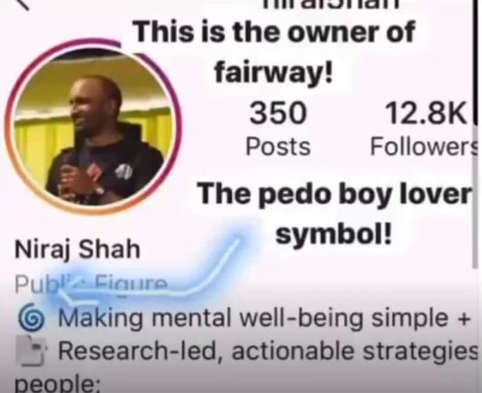 There isn’t much information on these two, but a closer look at CEO Shah revealed a symbol on his social media profile that looked a hell of a lot like the pedophilia little boy lover symbol.