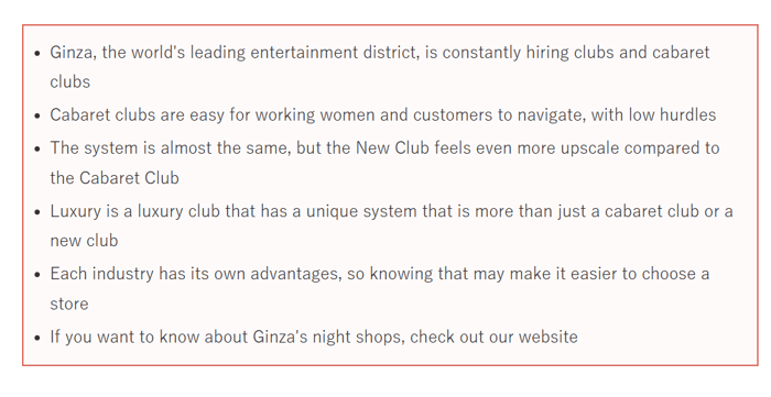 More specifically, it helps women into prostitution in Ginza.