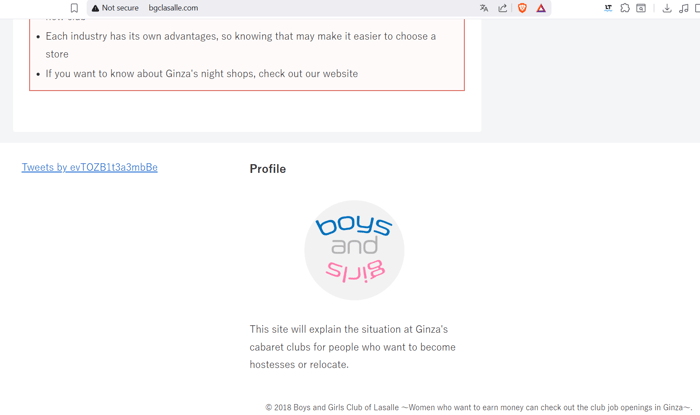 So this website, the Boys and Girls Club of Lasalle (Montreal, Canada) is helping women into prostitution in Tokyo, Japan.