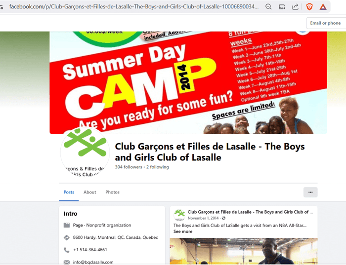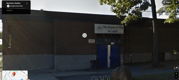 If you google search the name above the door, Club Garçons et Filles de Lasalle, the only result is this Facebook page. (https://www.facebook.com/p/Club-Gar%C3%A7ons-et-Filles-de-Lasalle-The-Boys-and-Girls-Club-of-Lasalle-100068900347443/)