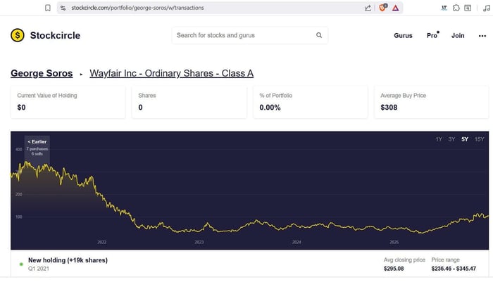 Other than art, do you know what Mr. Soros funds? Wayfair.