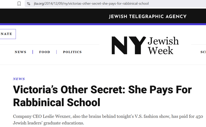 Jewish Leslie Herbert Wexner, also known as Wex and Les, is an American billionaire businessman who is best known for his companies, Bath & Body Works, Abercrombie & Fitch, Victoria's Secret, and La Senza, among other retail corporations.