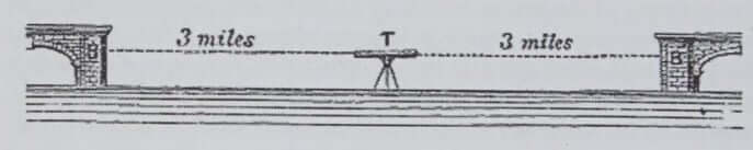 He put the theodolite directly between two points, with three miles on each side. The assumption was that, due to six feet of curve of the earth on each side, it would be impossible to see the buildings level from the center.