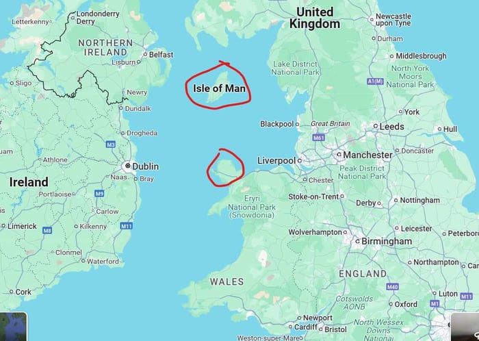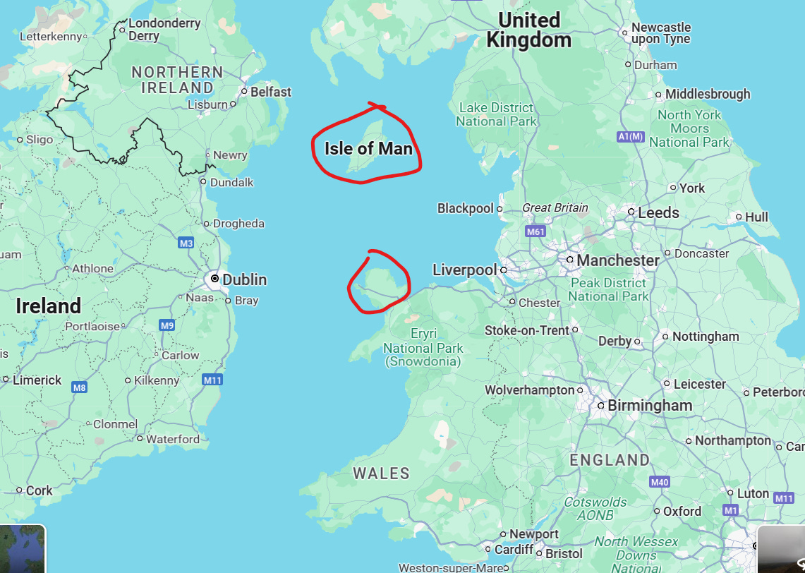 Next, from the Isle of Man, the whole length of the coast of North Wales can be seen, 50 statute miles away (I think this is the area he is referring to):