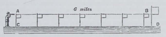 In the next experiment, Parallax took flags and spaced them out at equal heights for six miles. The hypothesis was that because of curvature, only the first flag would appear level, the second would appear lower, and the rest would begin to be greatly impacted by the curve of the earth, with the final flags being completely out of sight.