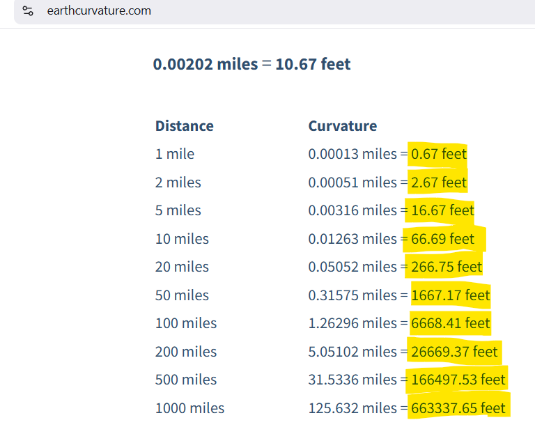 Of course none of this is possible on a globe-shaped earth model because the curvature is over 48,596 feet (almost 10 miles, which is 16 km.)