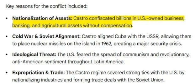 To make matters worse for the syndicate and their pals, Castro confiscated the Freeport Nickel mine, which was a 119 million dollar collaboration involving the US government and the Rockefellers. I guess Google wasn’t completely lying when it said the reason Castro had to go was because he confiscated billions in US-owned businesses and banking assets.