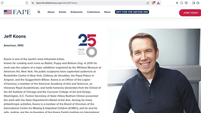 One of the artists who provides art for the FAPE program is Jeff Koons. This guy is such a big deal that he has won lots of awards from both FAPE and the NEA. He even has his own page on the FAPE website.