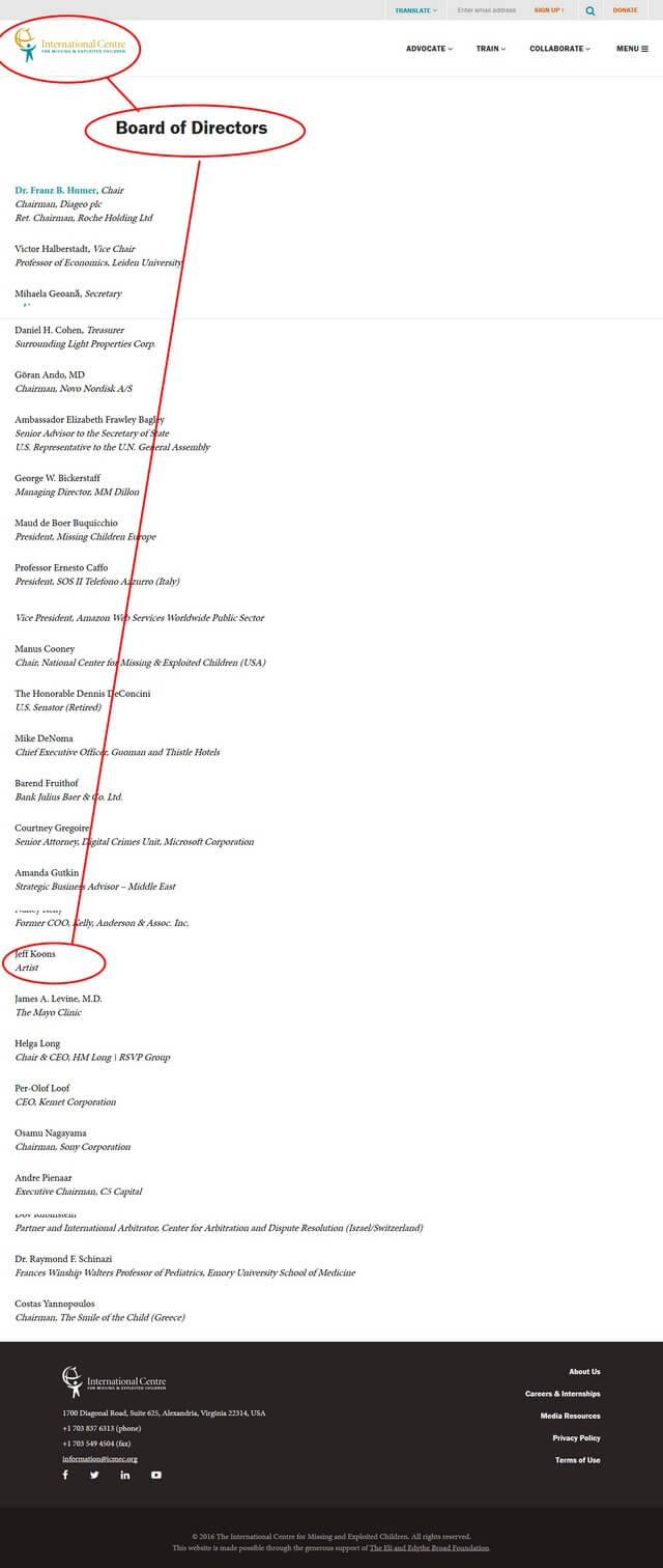 The Institute focuses on research into child trafficking and child abuse as well as creating legislation to combat child pornography. As you can see, all of these people are incredibly interested in children, specifically abused children. They themselves create the policies and procedures that are to be used when a child vanishes or is harmed. They dictate to law enforcement which issues are important while controlling the center for missing and exploited children as well as the Amber Alert system. These same people have channels to ship without restriction because they happen to also be heavily into art, and these channels are layered with diplomatic immunity. Meanwhile, trafficking is at an all-time high.