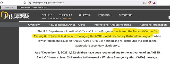 Why does this matter? Because ICMEC controls the Rapid Emergency Child Alert Systems, including AMBER Alerts.