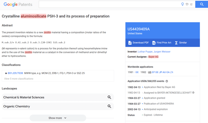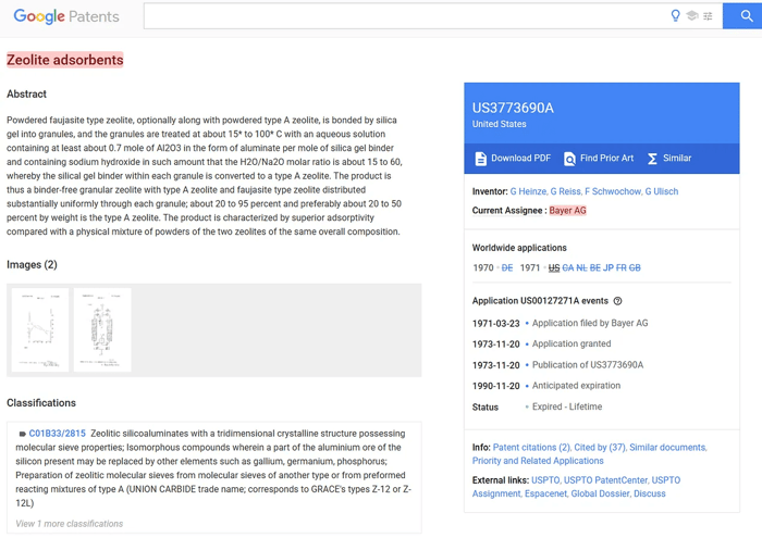 These patents are not direct Zeolite patents yet mention Zeolite a lot