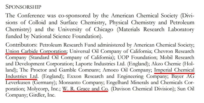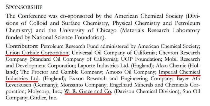 Union Carbide and W.R. Grace are sponsors as usual as well as Imperial Chemical Industries.