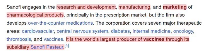Today Sanofi has significant involvement in the supplements and vitamins sector.