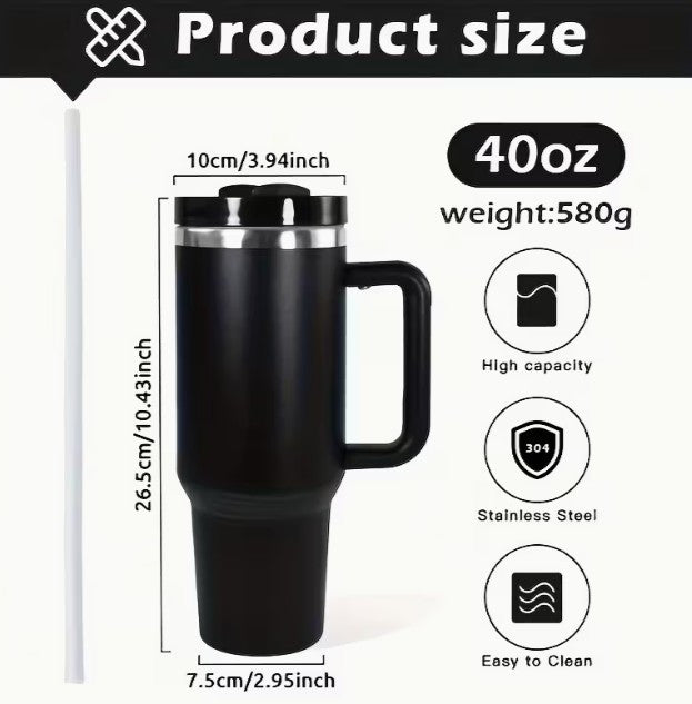 Huge 40oz STAINLESS STEEL Tumbler Mug - BLANK BLACK (A-2-2)