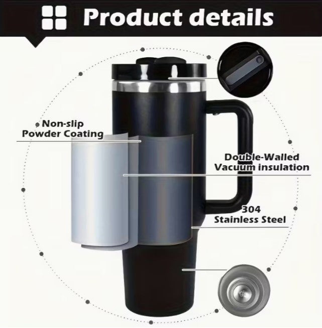 - 40oz tumblers with a black powder coating.
